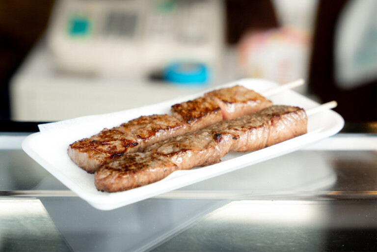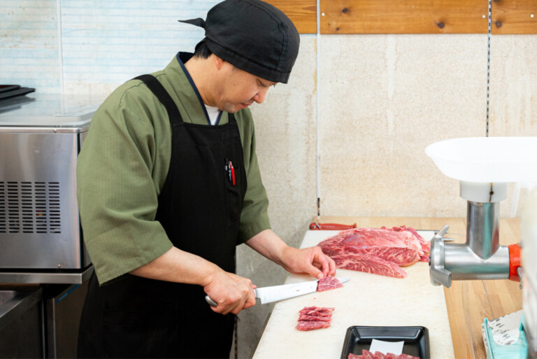 店舗では精肉はもちろん、牛串・揚げ物・お弁当など、村上牛を楽しめる人気商品が充実しています。週末は、家族連れや県外から来られるお客さんも多く、最近は若いお客様も多いとのこと。気に入ってくださったお客様が、帰省や旅行の際に家族三世代で来店してくれることも多いそうです。