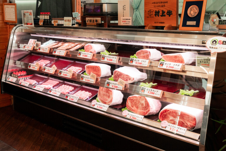 「美食や やま信」は、村上牛を専門に扱う精肉店。もともとは先代が営む小さなスーパーでしたが、代替わりを機に『村上牛専門店』へと業態を切り替えました。当時、村上牛はすでに“日本一”を2度受賞していましたが、新潟が「豚肉文化」だったこともあり、地元ではまだ広く知られていませんでした。そこでやま信さんは、北海道から沖縄まで百貨店を巡り、物産展などを通して村上牛のおいしさを積極的に発信!!“村上牛の魅力を全国に伝えてきたお店”として知られています。