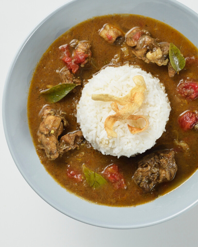 香り高いスリランカの本格スパイスをふんだんに使用し、豊かな香りが食欲をそそるチキンカレー。新潟県産の鶏肉をゴロッと贅沢に入れ、スパイスとの相性も抜群。食べ応えがあり、スパイスの奥深い風味が楽しめる一皿に仕上げました。