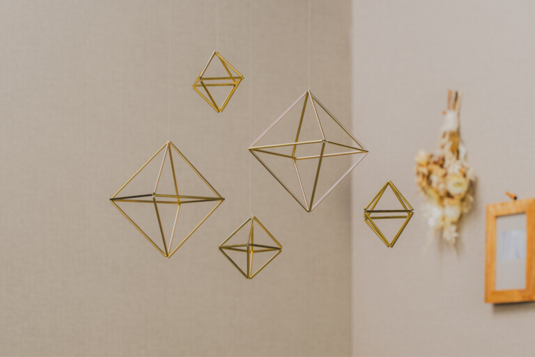 北欧・フィンランドの伝統装飾「ヒンメリ」を、上質な真鍮パイプで手作りできる製作キットです。光を受けてやわらかくきらめく幾何学模様は、どの角度から見ても美しく、静かな存在感を放ちます。窓辺やリビングに吊るすだけで、お部屋が洗練された雰囲気に。
