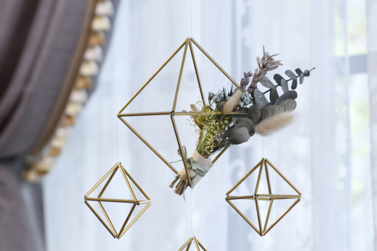 エアプランツやスワッグを中に入れたり、タッセルやビーズを加えたりと、季節や気分に合わせて自由にアレンジが可能です。リビングや玄関、寝室の一角に吊るすだけで、光と影がやさしく揺れ、心を和ませてくれます。