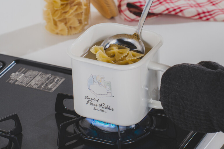 「ピーターラビット」のおはなしの世界観を、清潔感のある白いホーローにデザインしたキッチンシリーズ。こちらのホーローマルチスクエアポットは、味噌パックがぴったり入るスクエア型の保存容器。可愛らしさの中にも、すっきりとした佇まい。大人のキッチンにも自然になじむデザインで、毎日使いたくなる存在です。母の日の贈り物や、ギフトにもおすすめです。